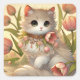 Spring Tulip Cat Square Sticker