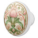 The "Spring Tulip Elegance Ceramic Knob" showcases the classic beauty of Art Nouveau design with a central tulip surrounded by gracefully intertwining leaves and flowers. The soft pink petals of the tulip are accentuated by lush green foliage, all highlighted with delicate golden lines that add a touch of luxury and refinement. The intricate pattern is set against a creamy background, allowing the colours and details to stand out beautifully. This knob is not just a functional piece but a miniature work of art that celebrates the elegance of natural forms and the sophistication of vintage design. Perfect for those who appreciate the blend of utility and beauty, this ceramic knob will add a charming and artistic touch to any room.