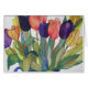 Blank note cards and greeting cards featuring these tulip flowers in red, orange, yellow, blue and purple. Made from an original watercolor painting.