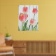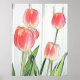 The spring garden comes to life with brilliant coral pink tulips. This original design features luxurious water colour tones that highlight the delicate petals in the fresh spring garden art image. Sure to remind you of the smell of a fresh spring tulip bouquet every day!