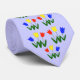 this pretty tie is as bright as a spring garden with tulips in orange yellow and blue. Bring a touch of spring to work with you