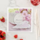 Adorable and editable wedding design paper napkins, perfect for modern wedding or spring wedding with a beautiful fresh spring cherryblossoms an old loveletter and pink heart on pink white dotted background in a wonderful green backlight. Customizable Bags, Paper Cups, Plates, Winelabels, Wedding invitations, Save the Date Invitations, Directions, Accommodation and Information cards. All things you need for your most beautiful day in life. This is the best and Number 1 Design for your special day. Customizable invitation design for romantic weddings. Created with Love by UtART