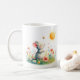Mug featuring a watercolor Mouse in a spring landscape. Customizable.