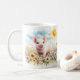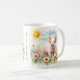 Mug featuring a watercolor Pig in a spring landscape. Customizable.