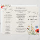 This beautiful wedding program is perfect for a spring or summer wedding with a rustic, floral theme. The design features a watercolor illustration of a wildflower meadow with daisies, poppies, and other blooms. The program includes all the essential information for your guests, such as the order of service, the names of the wedding party, and a special message from the couple.