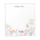 Add some extra color and fun to your desk with this spring themed notepad featuring a variety of delicate wildflowers in shades of pink, orange, yellow and green. Add a name, initials or other custom text at the top, or delete to leave blank! Font styles and colors are easily changed. Please check out my store here on Zazzle for other great products and designs and be sure to follow me for new product updates! Thank you for your interest in SapphireDesigns!