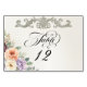 This lovely design features a nature inspired background embellished with wildflowers, a scroll design and a place for the table number. To edit the table number: change the number individually and add to your cart. Designed to coordinate with the Springtime Wildflowers Wedding Collection. To change details, click «Personalize». To move the text or change the text size, font, or color click «Click to customize further».