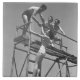 Two couples on springboard, (B&W), low angle view | George Marks | AssetID: 72417892