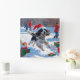 Springer Spaniel Running Snow with Christmas Hat Square Wall Clock