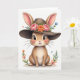 This design shows a sweet, human-like bunny centered on a bright white background, looking straight ahead with a calm expression that feels like a quiet hello 🐰. Soft lighting brings out the plush texture of its fur and a light blush on its cheeks, as if it’s been caught in a tender moment meant for a close friend. A wide-brimmed brown hat sits on its head, topped with a lush ring of flowers that reads like a springtime gift 🌷. The floral crown mixes pink and orange rose-like blooms with small blossoms and green leaves, arranged in layered clusters that spill gently around the hat. Large dark-brown eyes hold a tiny highlight, and the slight upturned smile and fine whiskers add a shy, affectionate tone to the face. There’s no visible text on the front, leaving the open white space to keep all attention on the character and its floral details. Near the lower body, small sprigs of flowers and leaves curve upward in a light frame beneath the bunny.