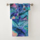 Speckled glossy paint daubs layered thickly in a dimensional field of pinks, blues and aqua teals.