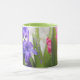Springtime mug with beautiful blue-violet, pink and white hyacinth flowers. Perfect gift for those who love floral designs.