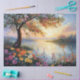Beautiful and colourful landscape digital painting of spring flowers being reflected in a river.