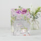 Pretty pink floral easter invitation featuring beautiful purple peonies flowers with a the sweetest bunny rabbits set on a stunning grey background with a coordinating back.