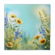 Springtime Wildflowers In Soft Blue Tile