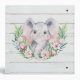 Adorable watercolor graphic illustration of an elephant with pretty pink and purple boho flowers to decorate. Add your own text, name to create a unique personalized binder, planner, note book for mums-to-be. Lovely Baby Shower gift item.