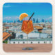 Spritz cocktail on a table with view of Milan Square Paper Coaster