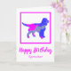Sprocker Spaniel dog silhouette in crazy hot pink and blue bright modern abstract pattern. Funny birthday message inside can be changed to anything you want. Personalize with name on the front.