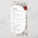 Elevate your winter wedding reception with our beautifully crafted Spruce & Lace Winter Floral Wedding Menu. Featuring an elegant blend of deep red roses, delicate white florals, and lush greenery, this menu design evokes the cozy charm of a winter celebration without any references to snow. Perfect for brides who love the seasonal ambiance of winter weddings but prefer a timeless floral touch.