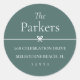 Sweet and simple return address labels feature a minimalist layout that's perfect for your Christmas holiday greetings or all year long. Customize with your family name and address in clean, classic serif typeface on a soft spruce green background. A petite bow through the centre completes the design.