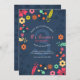 Small, colourful, flowers light up the navy blue background in this cute floral invitation. Perfect for a garden party or a little girl's birthday celebration. (<a href='https://www.freepik.com/free-vector/wedding-invitation-with-flowers-in-flat-style_2003046.htm'>Designed by Freepik</a>). <br/><br/>The card is easy to customize with your wording, font, font colour, paper shape options and choice of six paper types.<br/><br/>Not exactly what you're looking for? All our products can be custom designed to meet your needs at no extra charge.<br/><br/>Simply contact us at heartfelthelper@gmail.com.<br/><br/>Coordinating products available: Just ask us!