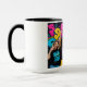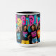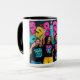A vibrant retro 90s mug design featuring neon colours, geometric shapes, and friends high-fiving. Perfect for nostalgia lovers and squad celebration themes.