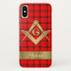 Square and Compass with a plaid background that can be customized with name or lodge.