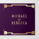 Square Art Deco Frame Purple Gold QR Code Wedding Tri-Fold Invitation