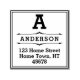 A traditional square personalized self-inking stamp design featuring a double rule border with classic slab serif monogram initial, name and return address text.