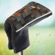 A golf head cover with abstract square boxes. This is a flat design made to look 3-dimensional.