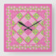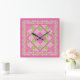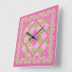 Square Clock: Pink: Primroses, Polka Dots, Gingham Square Wall Clock