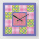 Square Clock: Pink: Primroses, Polka Dots, Gingham Square Wall Clock