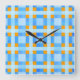 Square Crosses Check 10 Blue Orange Square Wall Clock