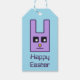 A cute square bunny for Easter. The rabbit is purple on a sky blue background.