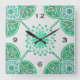 Square Green Tile Pattern Wall clock