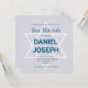 Elegant and modern design on a square shape invitation featuring the star of David on the background.