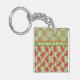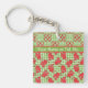 A fun, double-sided Keychain to personalize, with two country-style, mix'n'match patterns of cute red dragons on a green and white check gingham background.
