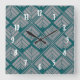 Square Leaf Pattern Teal Neutral Wall Clock