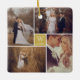 Simple minimalist line white grid with a centre coloured square in gold featuring the couple's monogram and the wedding year. Modern 4 photo collage christmas ornament for the newlywed or married couple.