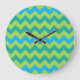 Square or Round Wall Clock, Blue Moons Chevrons Large Clock