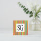 A square business card template with initials placed inside a square panel. This version also has a background image. The initials are in the Integrity bold font. Name and profession/job title along with telephone, email and website address in black on the reverse side on a white background, using variations of the Matt Antique font.