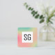 A square business card template with initials placed inside a square panel. This version also has a background image. The initials are in the Integrity bold font. Name and profession/job title along with telephone, email and website address in black on the reverse side on a white background. This template is also a good starting point for further customization.