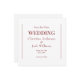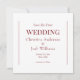 Wedding Save the Date. Simple and Modern. Simple Font. Ruby Red text. Square.