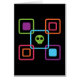 This bright and colourful skull art illustration looks like it belongs in a vintage videogame! This retro flavoued design features bright neon orange, purple, blue and green squares and outlines with a bright green cartoon skull in the centre! This skull art is perfect for anyone who loves 80's inspired artwork and fun original cartoon designs!