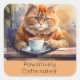 Square Sticker Orange Cat Drinking Coffee