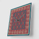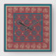 An elegant, square Wall Clock with a formalised floral pattern in beige and dark blue on a rich burgundy background.