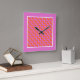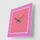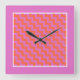 A bright and bold square Wall Clock, with a zigzag pattern of Magenta Pink and Bright Orange diagonal chevrons. You can easily change the colour of the white outline by using the Edit>Background button.
