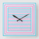 Square Wall Clock, Pink, Mauve, Turquoise Chevrons Square Wall Clock