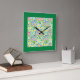 Square Wall Clock, Spring Primroses, Forest Green Square Wall Clock