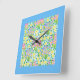 Square Wall Clock, Spring Primroses, Sky Blue Square Wall Clock